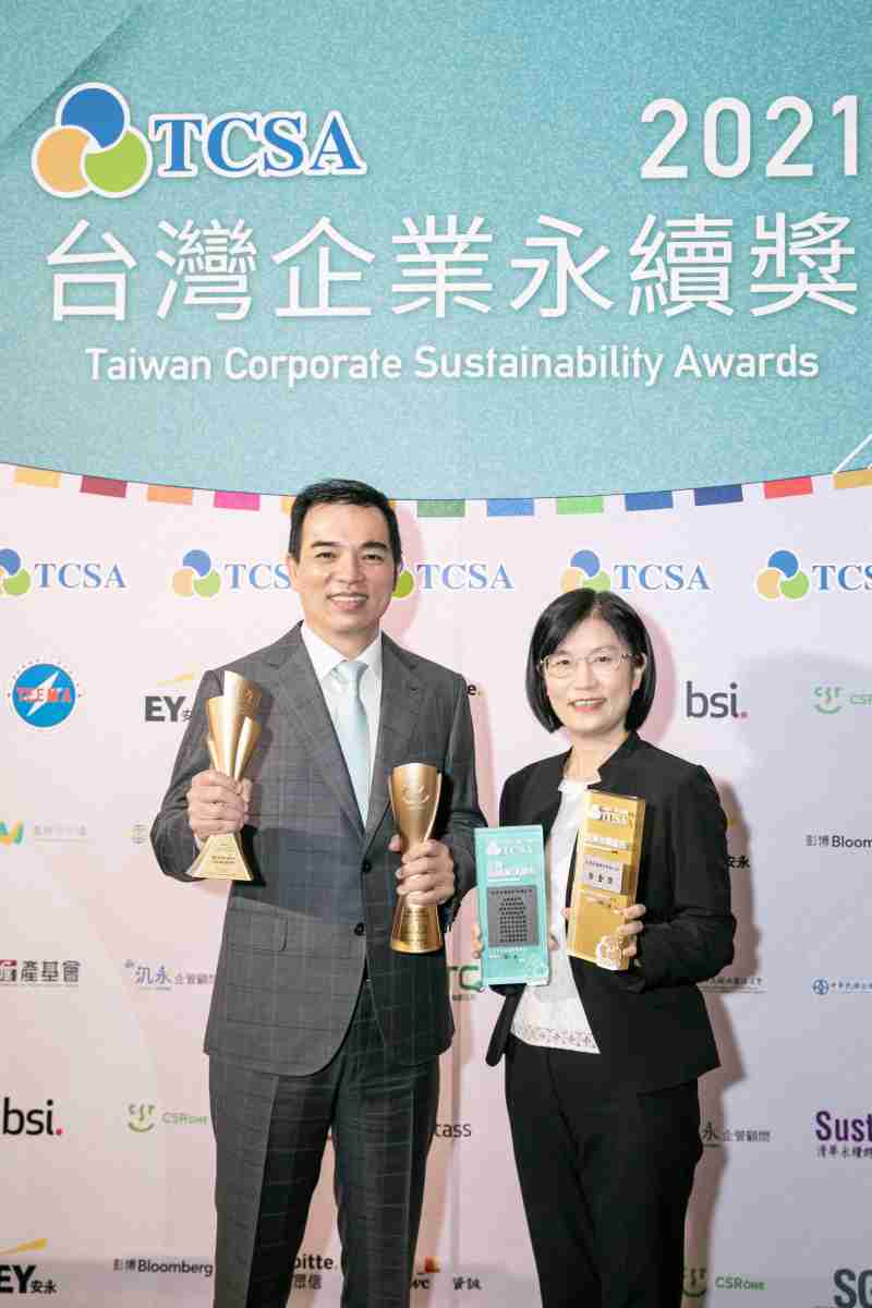 达在台湾永续奖所评比环境、、、社会、、治理等各面向的永续绩效均获高度肯定 (左:918.COM光电总经理暨营运长柯富仁,,,右:918.COM光电永续长古秀华)