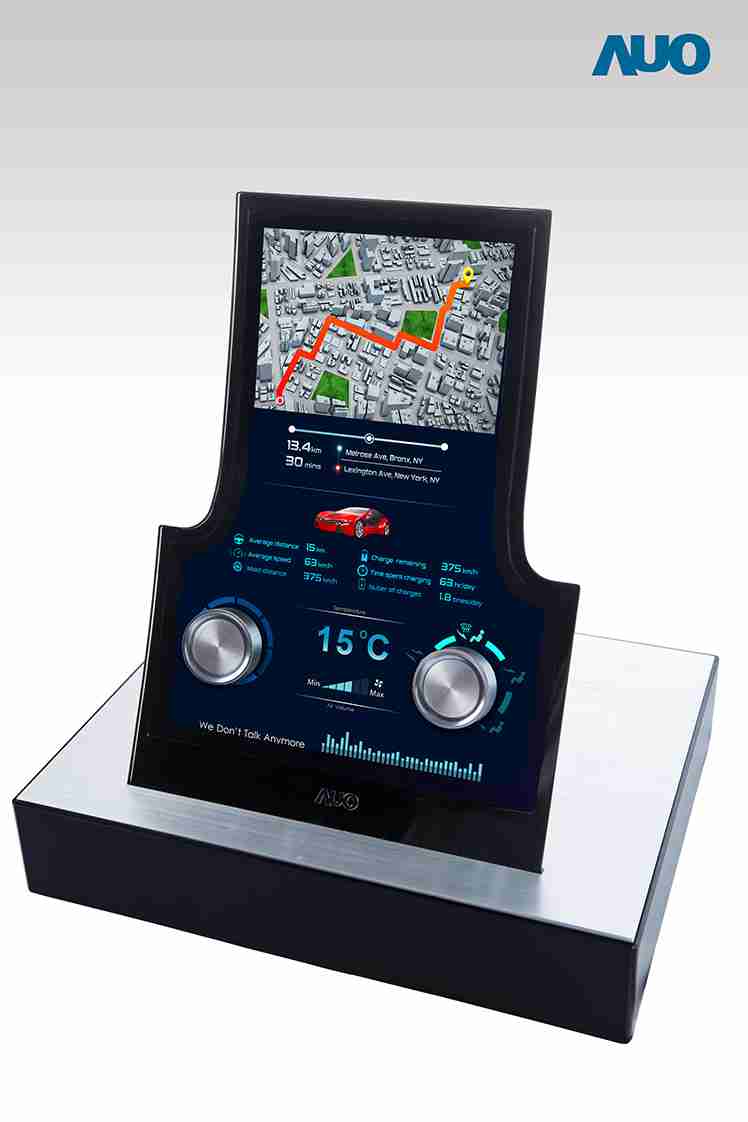 12.3 寸 Full HD LTPS 显示屏同样具备 1000 nits 高亮度,,搭载内嵌式触控技术,,,,整合驱动与触控 IC 于显示屏制程,,,,使显示屏厚度降低,,,为中控台创造更多机构设计空间。。。。应用于抬头显示器的 3寸 LTPS 显示屏具有高穿透率、、、、1200:1 高对比度度,,,以及 297 PPI 高画素密度。。。液晶最高可耐受到 110C 的高温 (TNI) 而不液化,,,在阳光高温下维持优异稳定的显示效果。。。