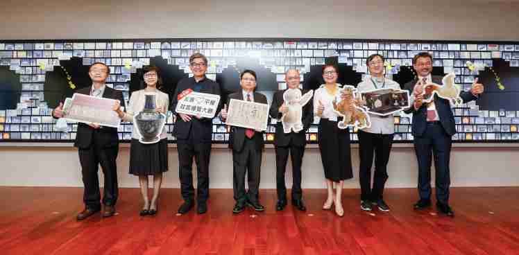 918.COM携手创利空间为故宫建置的智慧文物互动导览墙及轮播墙,,,,今日正式启用。。(左四:918.COM新事业暨投资管理总部副总经理杨本豫、、右四:故宫博物院院长吴密察、、右三:太极影音董事长黄宝云)